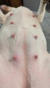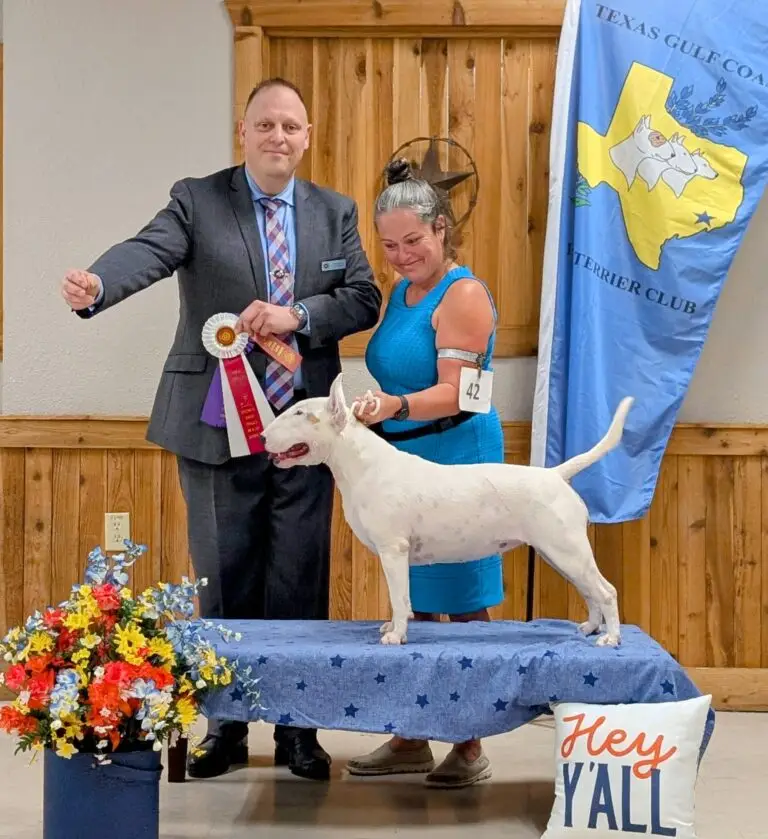 We had the pleasure of meeting Miranda and her girls this afternoon. We enjoyed interacting with Cotton, Rose, and Ella. Each one was social, friendly, loving, and happy to let us love on them. We lost our BT 6 months ago and have missed being around the breed every since. Thank you to your pack for giving us the opportunity to be around a Bull Terrier again. We look forward to the next time!